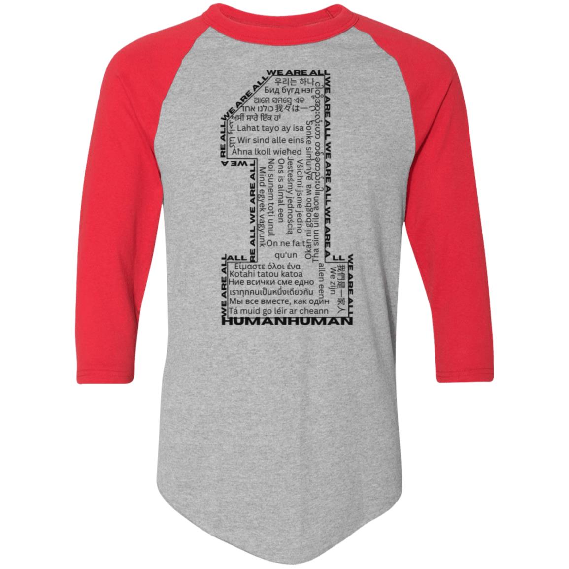 - Contrast color rib-knit collar and raglan sleeves